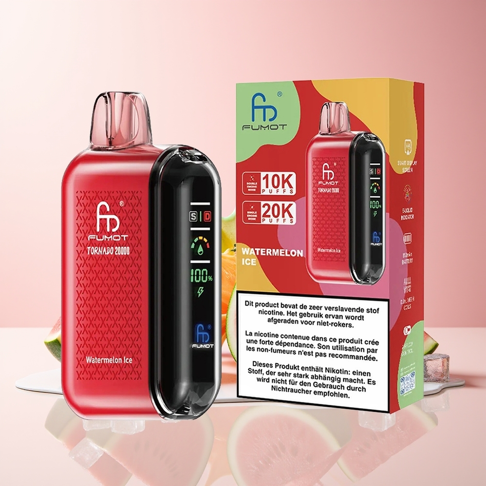 Fumot Tornado 20000 Puffs yhdistää huipputeknologian ja käyttäjäystävällisen designin, mikä tekee siitä erinomaisen valikoiman osaksi Tukkukauppa Suomi-tarjontaa. Tilaa nyt ja tarjoa asiakkailesi laadukas vape-kokemus!